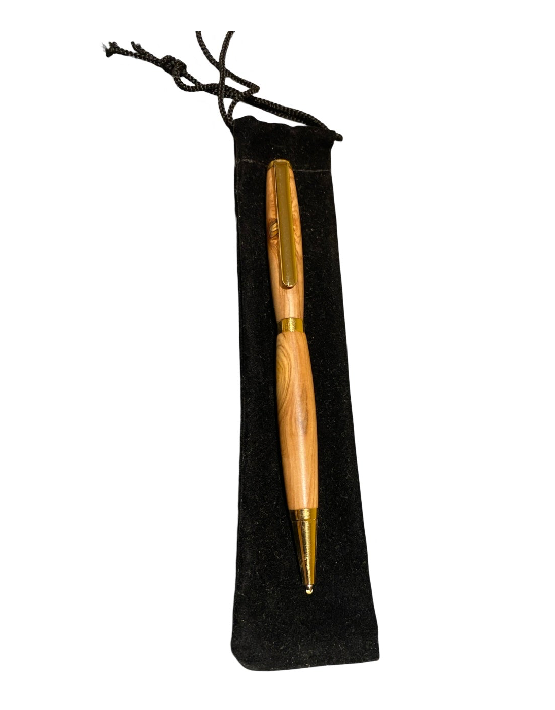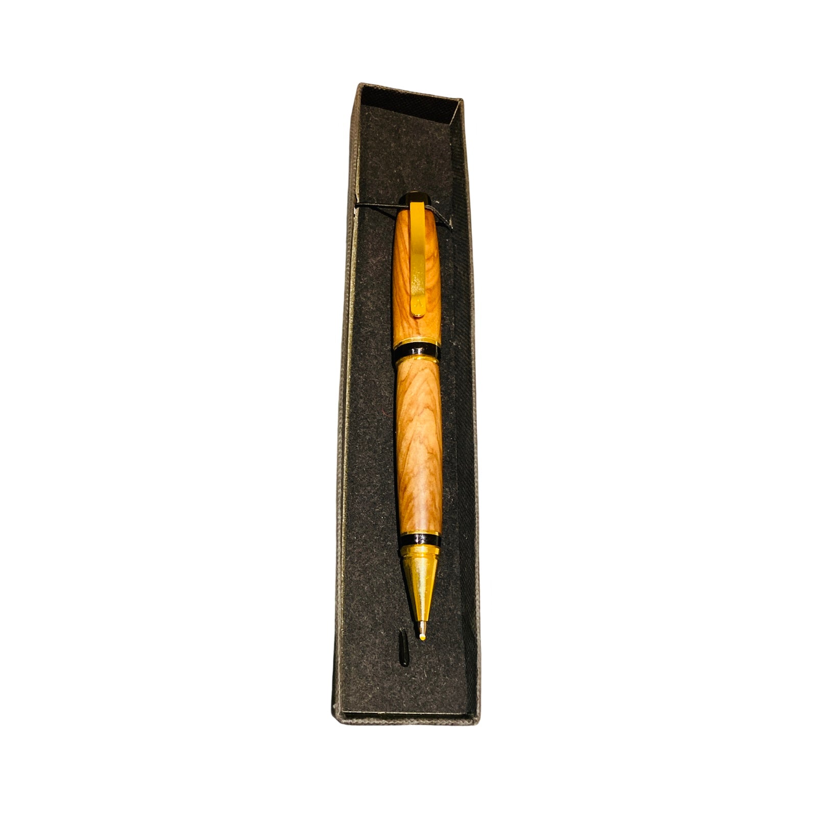 Our hand made olive wood pen is a must-have for any professional or avid writer. Crafted with precision, this slimline ball-point pen boasts brass finials and a tungsten carbide German mechanism for a smooth writing experience. Experience the benefits of writing with a high-quality pen that exudes elegance and durability.