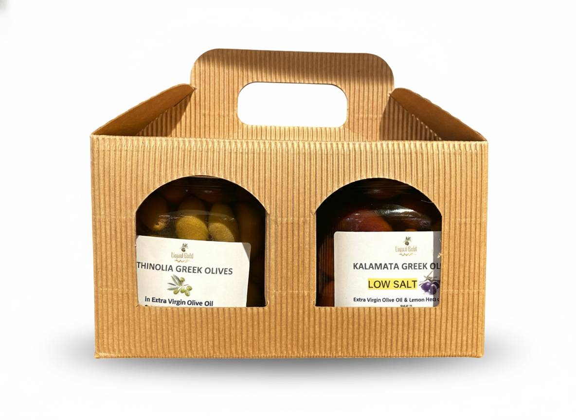 Greek Organic Olives Gift Set - 2 Jars of Green and Black olives in Extra Virgin Olive Oil dressing